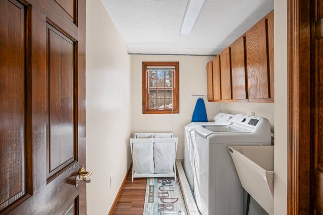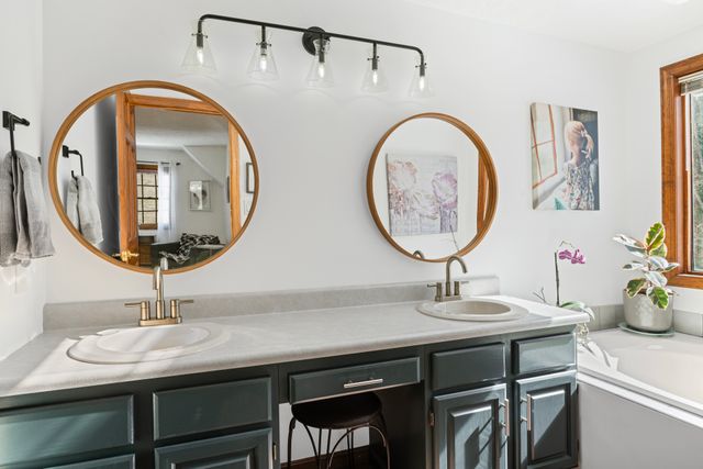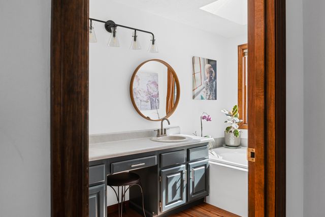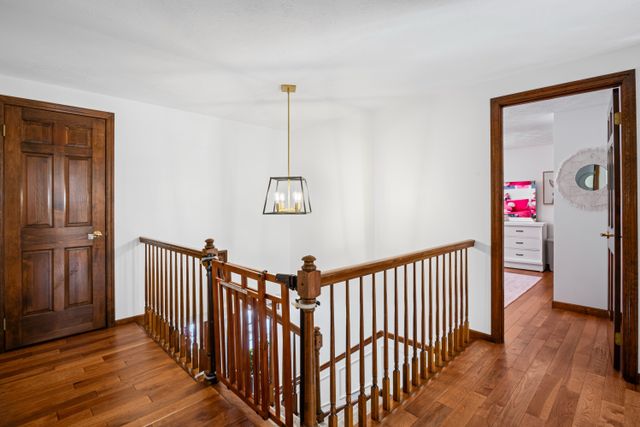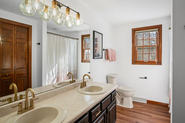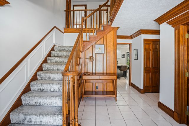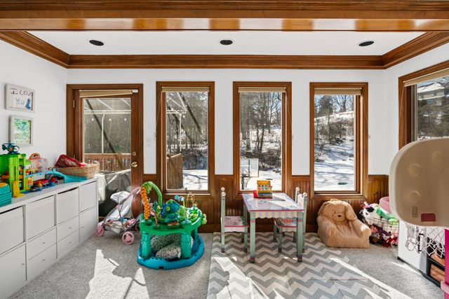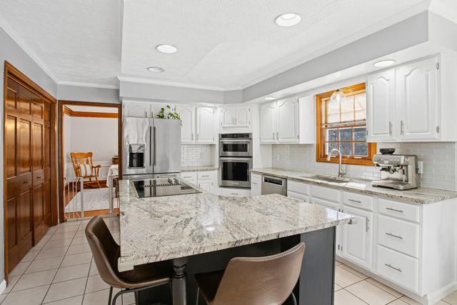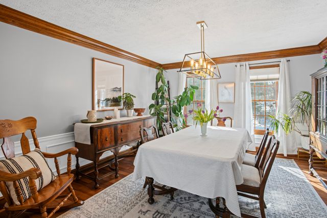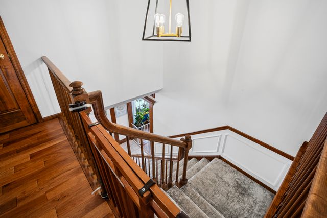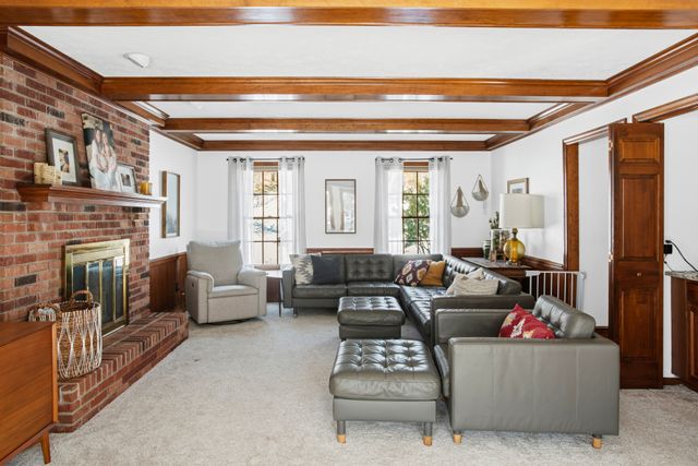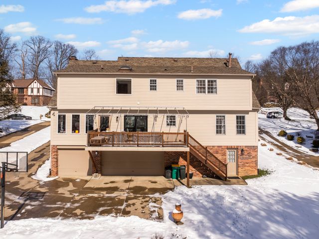 Welcome to this custom-built Cape Cod retreat in Franklin Park, nestled on a quiet cul-de-sac in coveted Ashbury Farms. This 4-bed, 2.5-bath home boasts charm and elegance throughout. The stunning entryway leads to newer hardwood floors, crown molding, and elegant wood paneling. The family room features a cozy fireplace, beamed ceiling, and wet bar, while the study offers rich judges panels and built-ins. A light-filled dining room, updated eat-in kitchen, and sunroom provide inviting spaces to relax or entertain. Step onto the back deck to enjoy a level yard with a wooded backdrop. Upstairs, find a convenient laundry area and a primary suite with a walk-in closet, jet tub, and scenic backyard views. The high-ceiling basement offers endless possibilities. A spacious driveway leads to a 3-car garage. Just minutes from shopping, dining, and major highways, this home offers the perfect blend of tranquility and convenience.